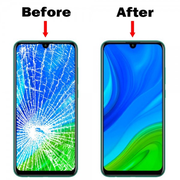 Vitre arrière avec Lentille camera + support pour Huawei P smart 2019 Bleu + Logo