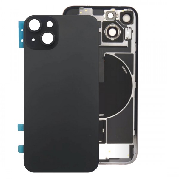 Vitre Arrière pour iPhone 15 Plus Noir avec Gros Trou pour NFC et Support