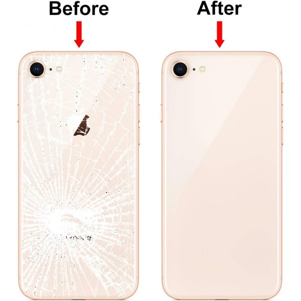 Cette vitre arrière pour iPhone 8 en or est conçue pour remplacer une vitre endommagée tout en offrant un ajustement parfait grâce à son gros trou, qui permet un accès optimal au module de la caméra.