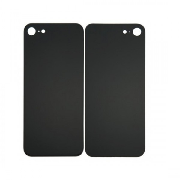 Cette vitre arrière pour iPhone 8 en noir est conçue pour remplacer une vitre endommagée. Avec son gros trou, elle permet un ajustement parfait autour du module de la caméra, garantissant un accès optimal tout en protégeant les composants internes.
